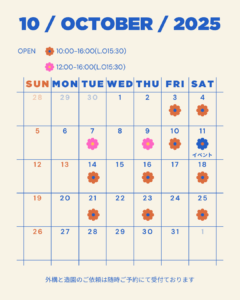 10月の店舗営業日となります