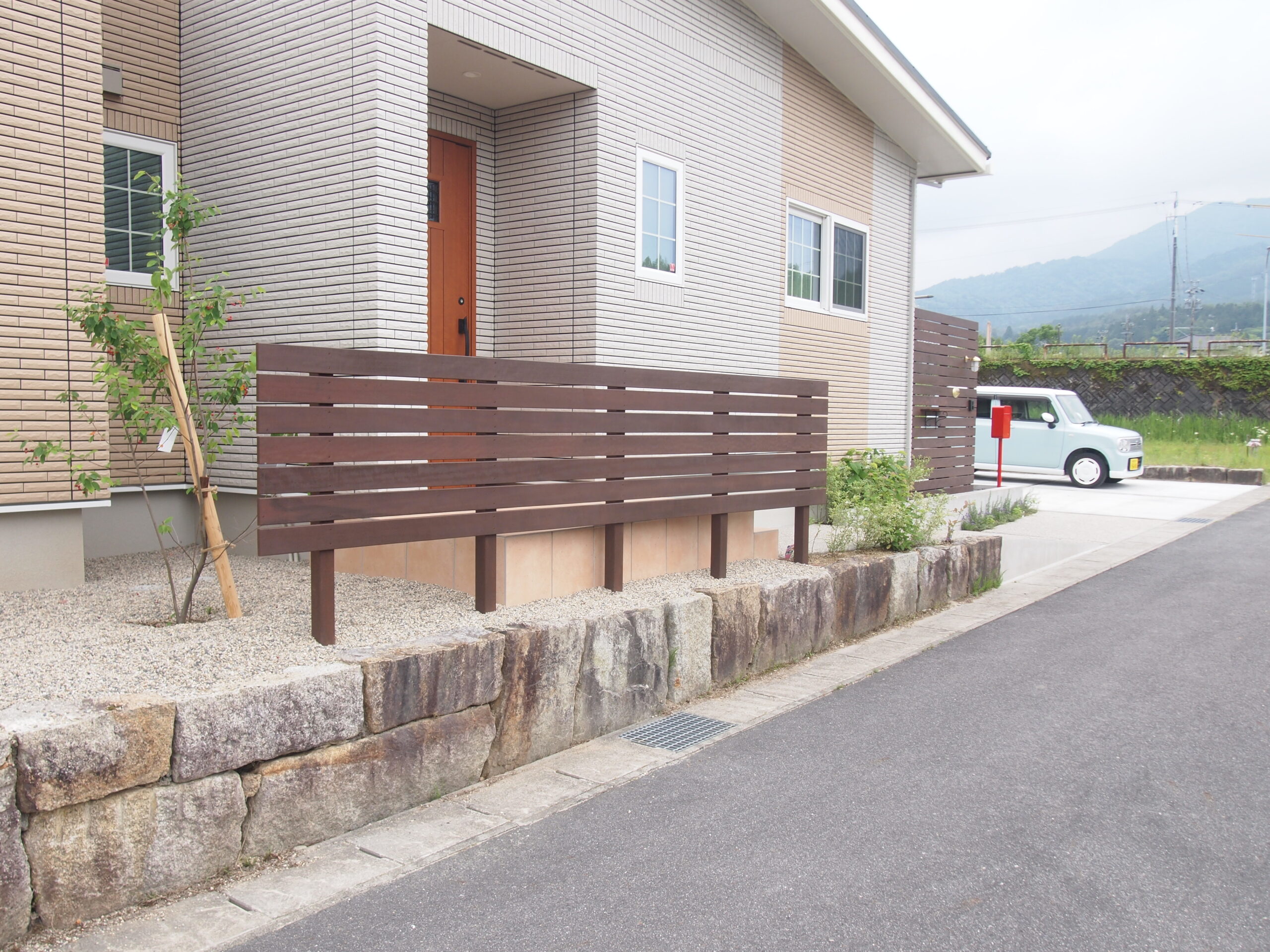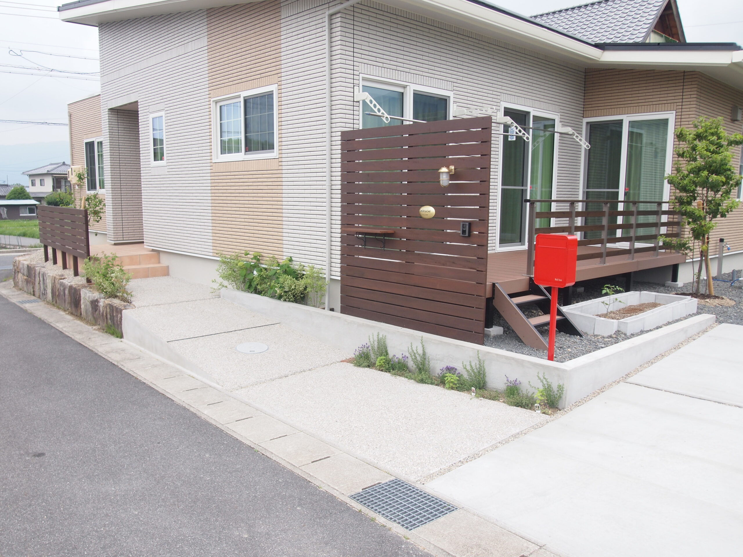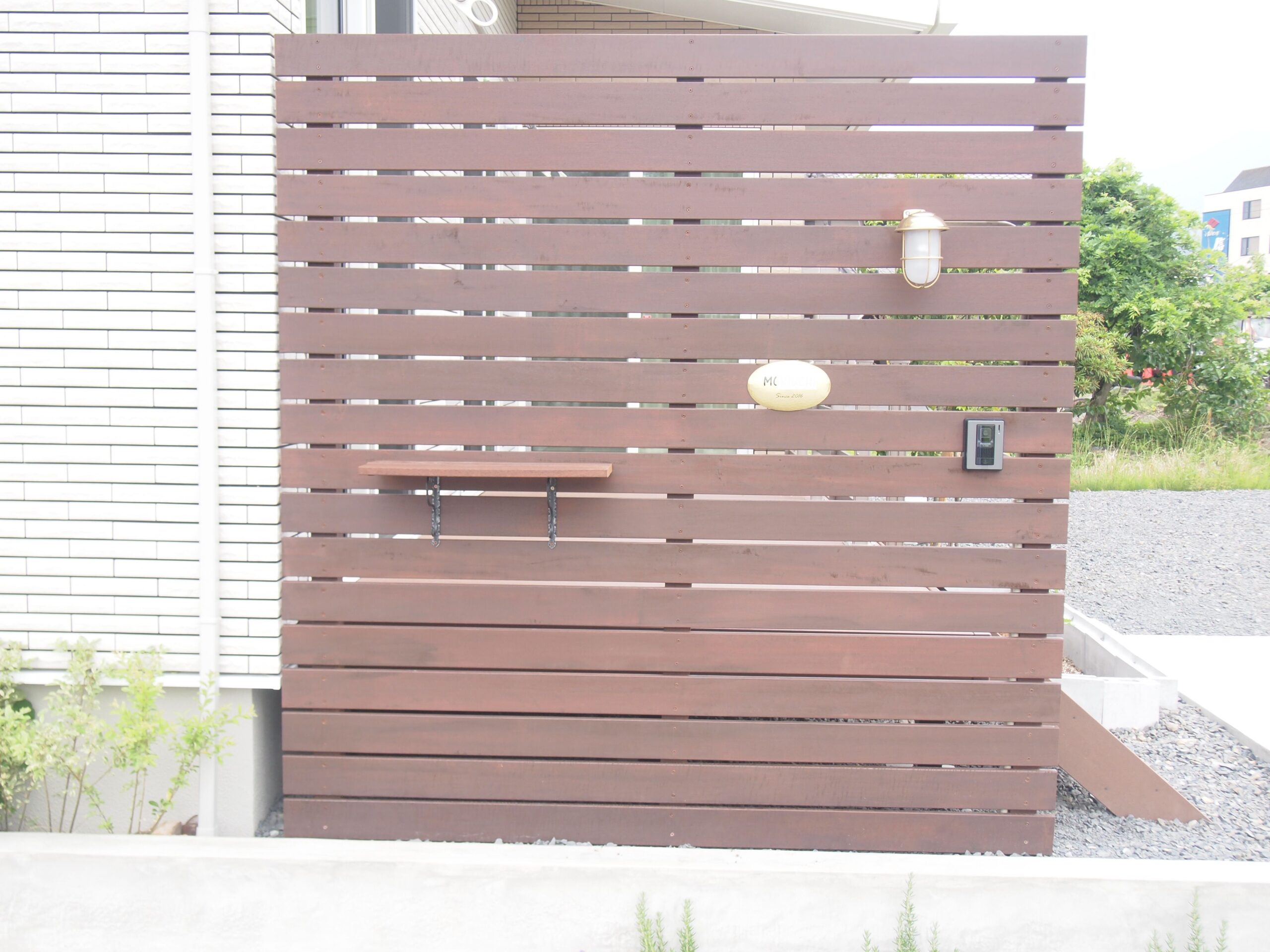 URIN FENCE-GATE/GREEN/DECK ウッドデッキとウッドデッキからの目隠しフェンスを兼ねた門をウリンで施工しました。 全体的にウリン・コンクリート素材のみでまとめたシンプルな大人なEXTERIORです。
