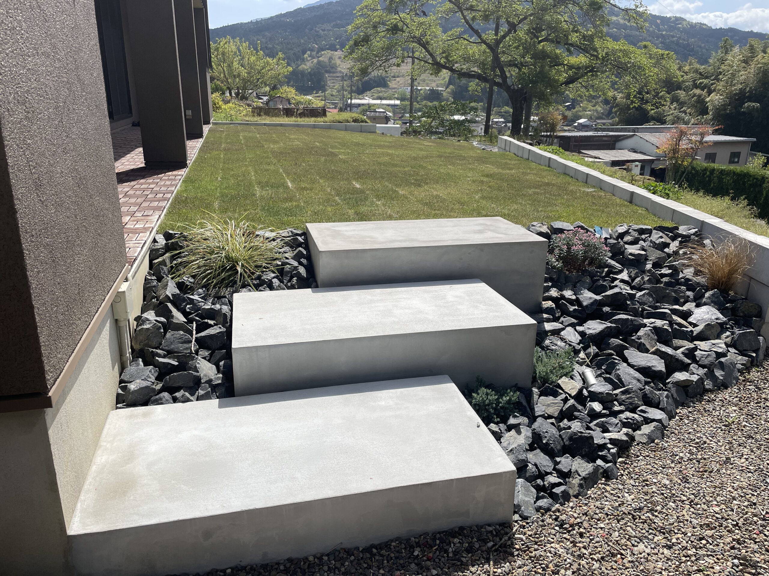 芝生/石組/照明/ブロック積み