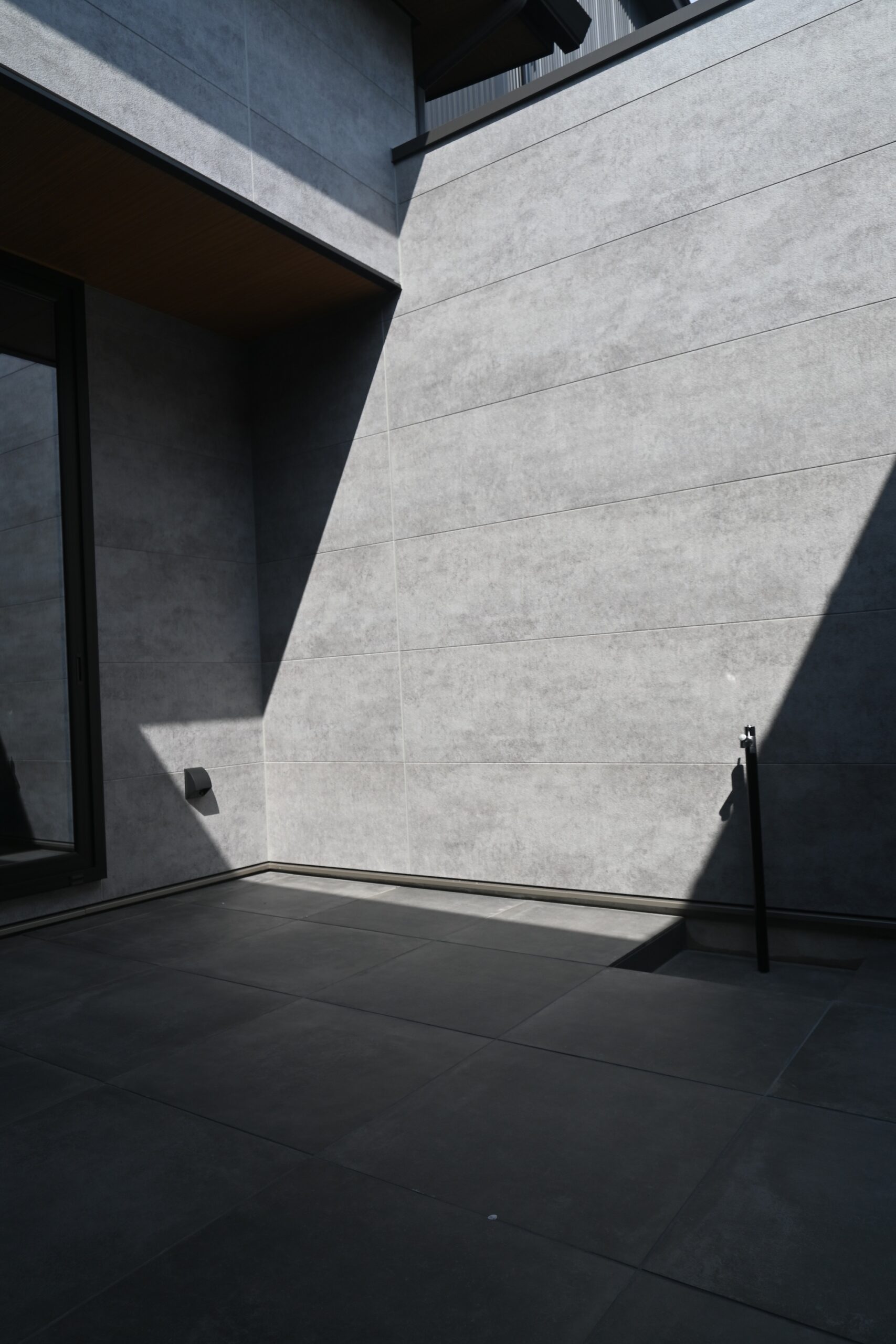 中庭のデッキは大判のタイルを使用しています