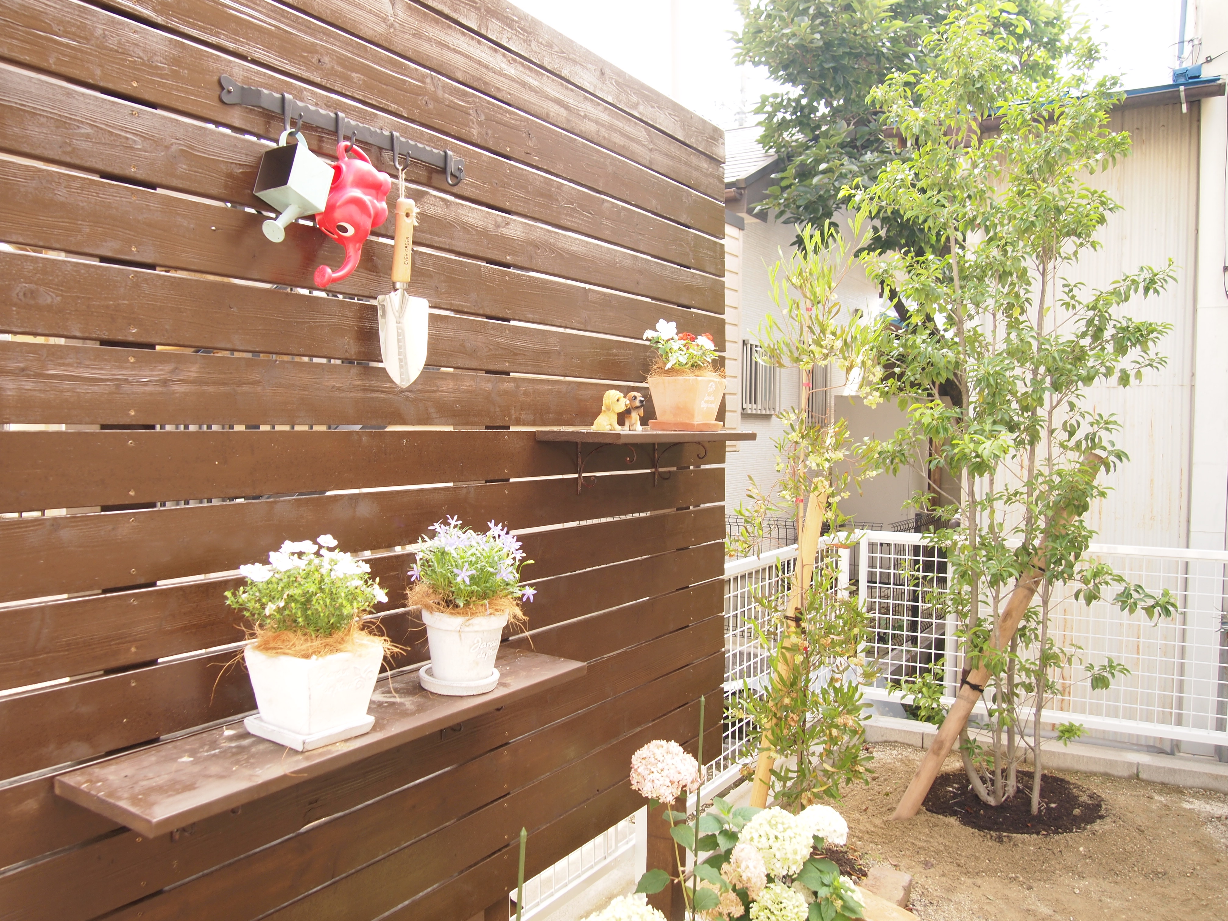 目隠しを兼ねてツール掛け兼用にウッドパネルを立てました。