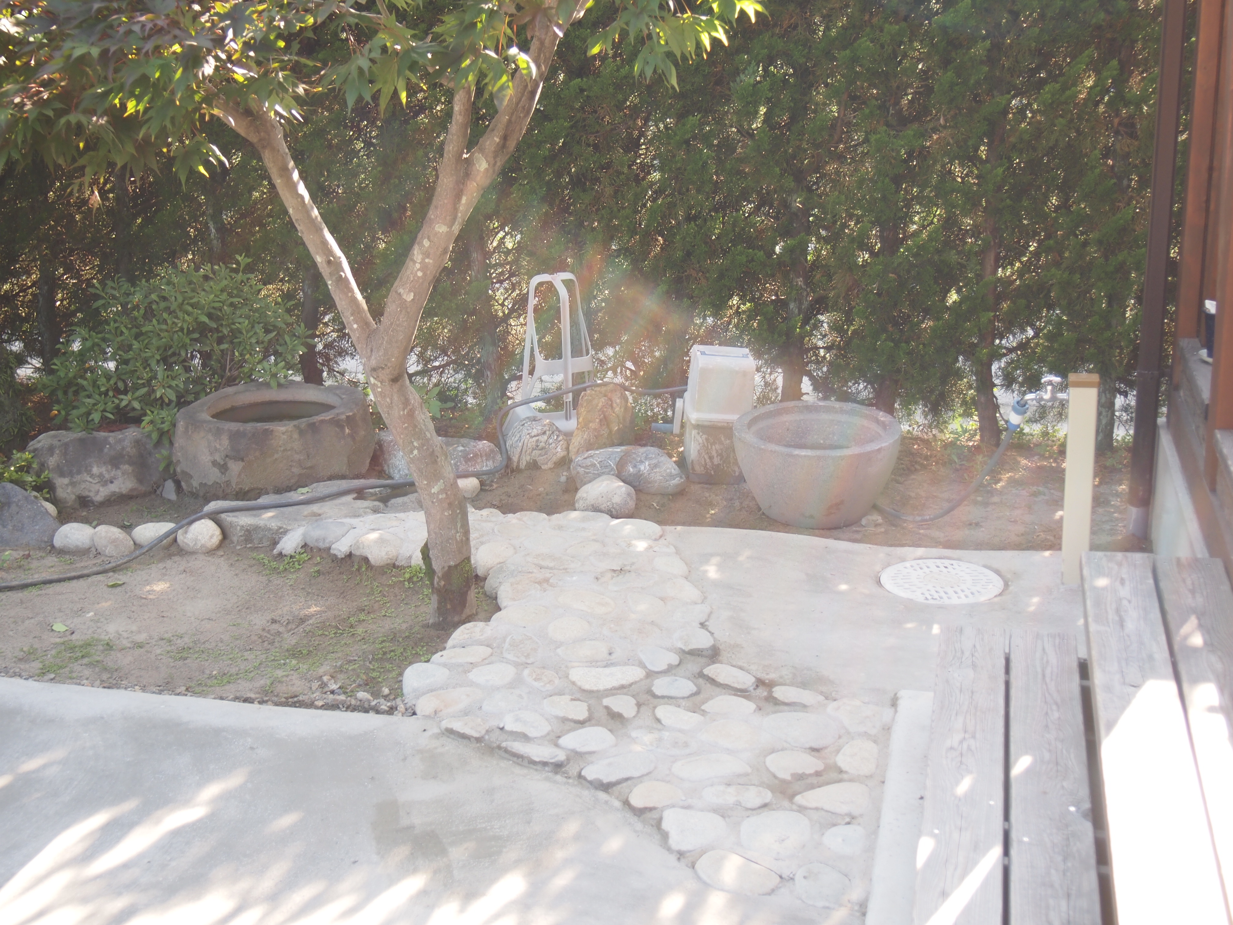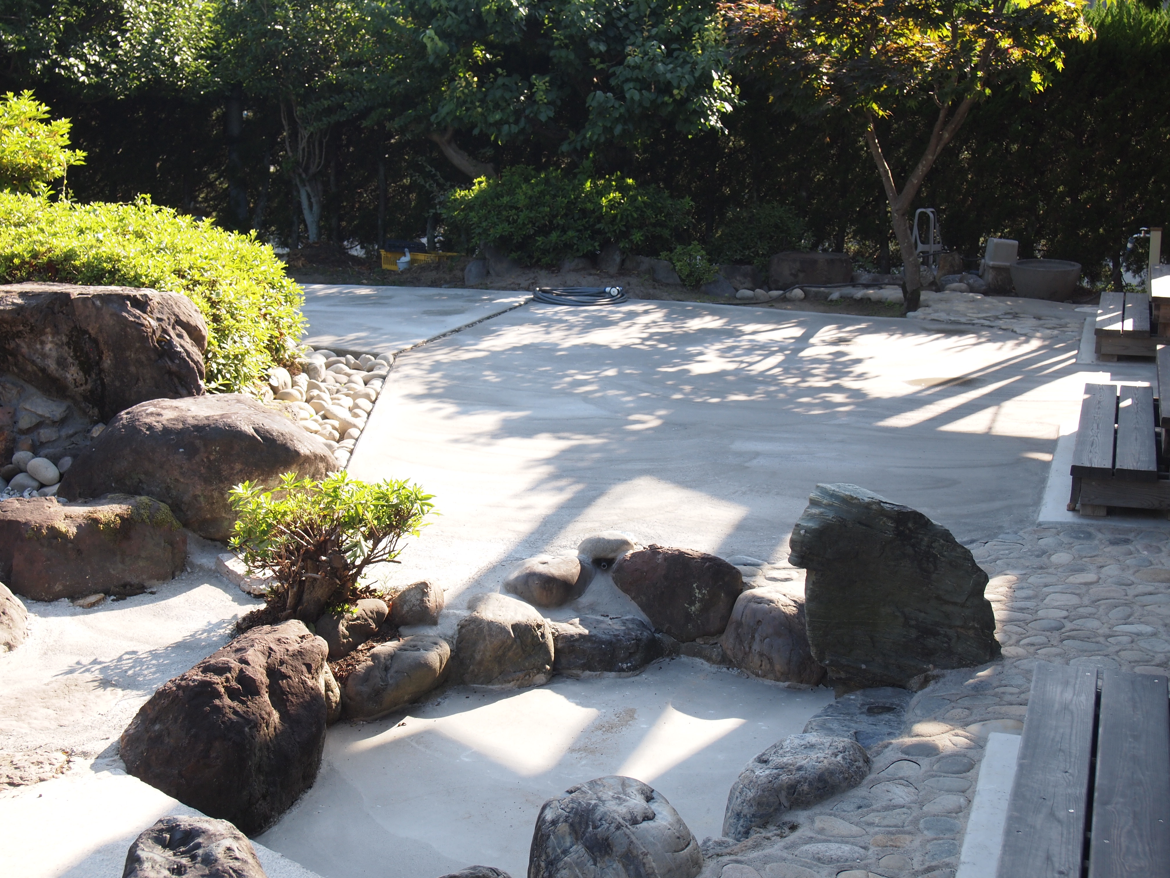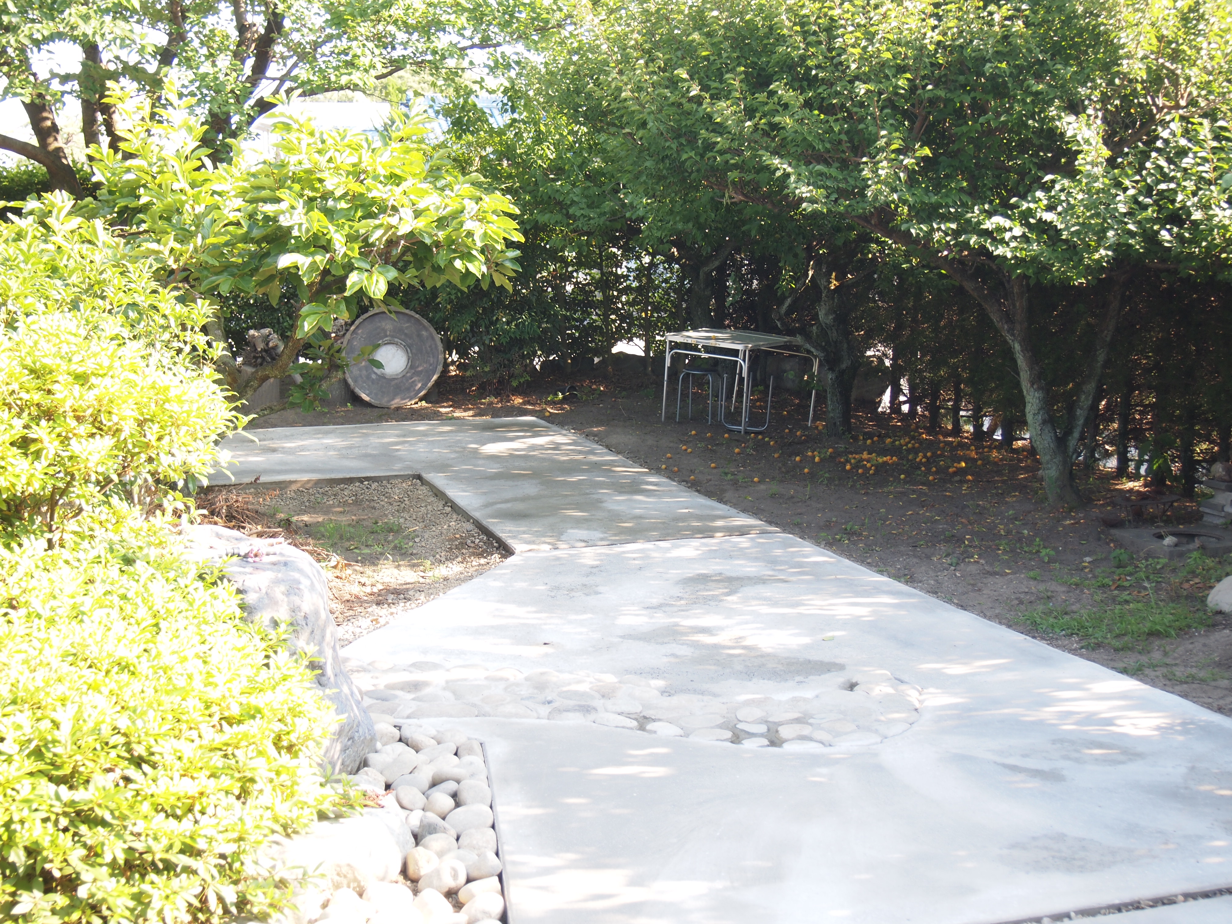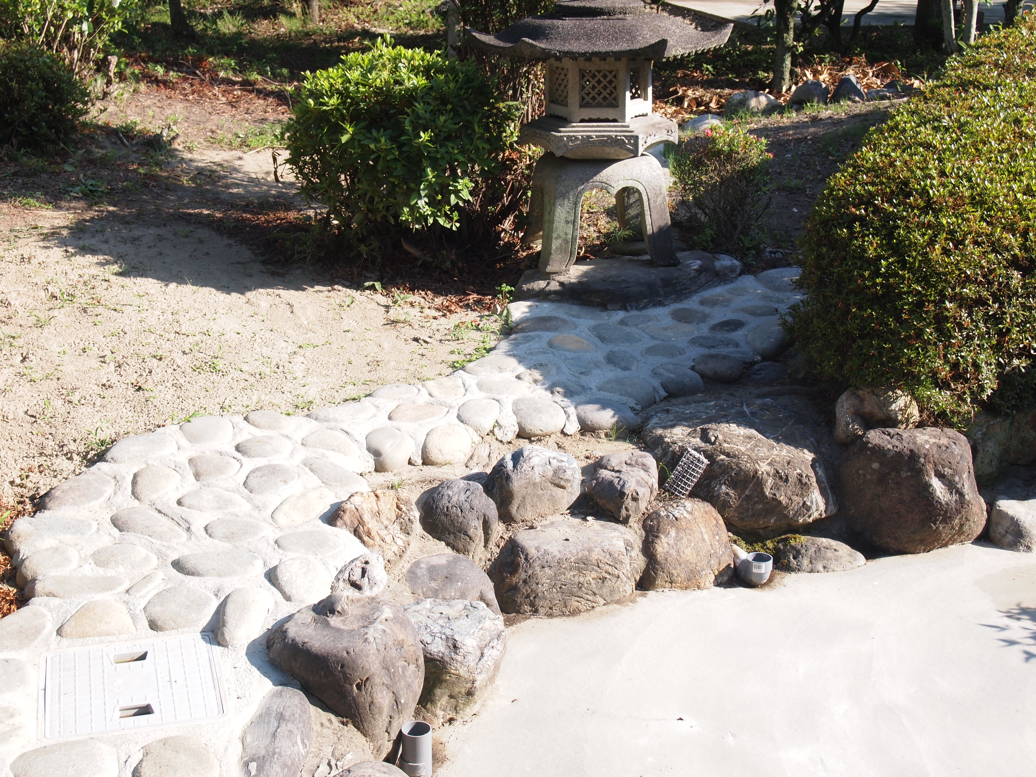 コンクリートと栗石敷きMIXで和風庭園に自然らしさを残しました