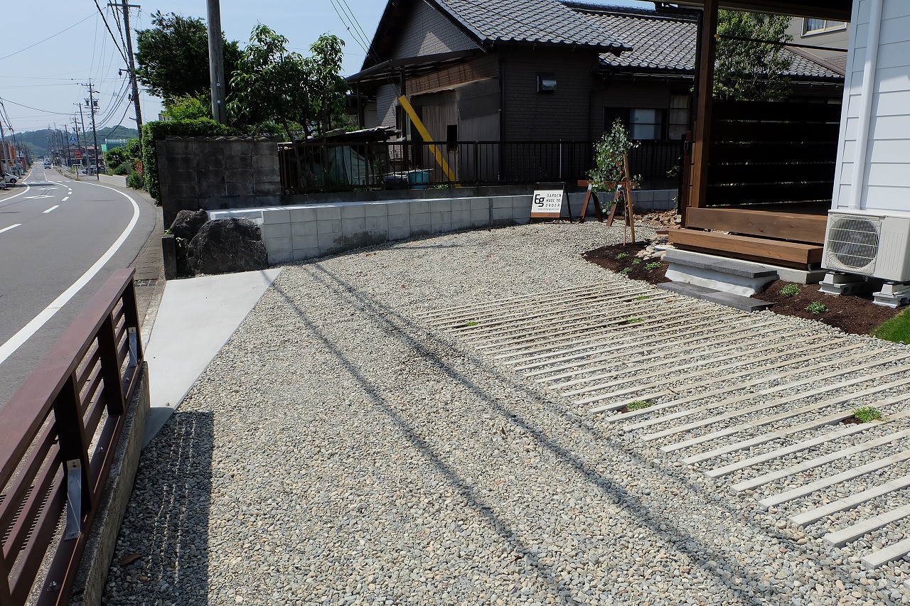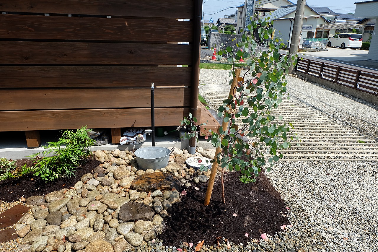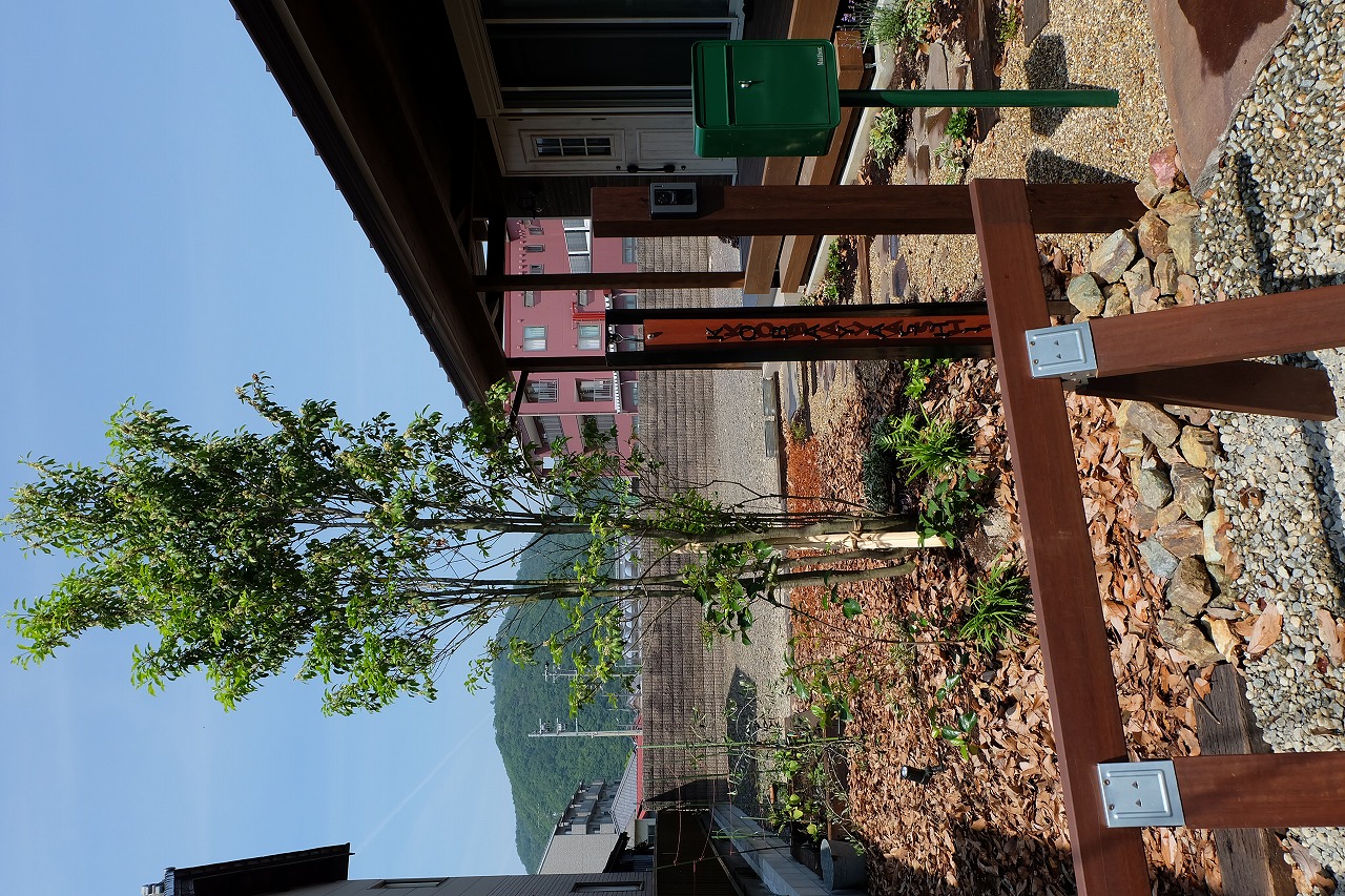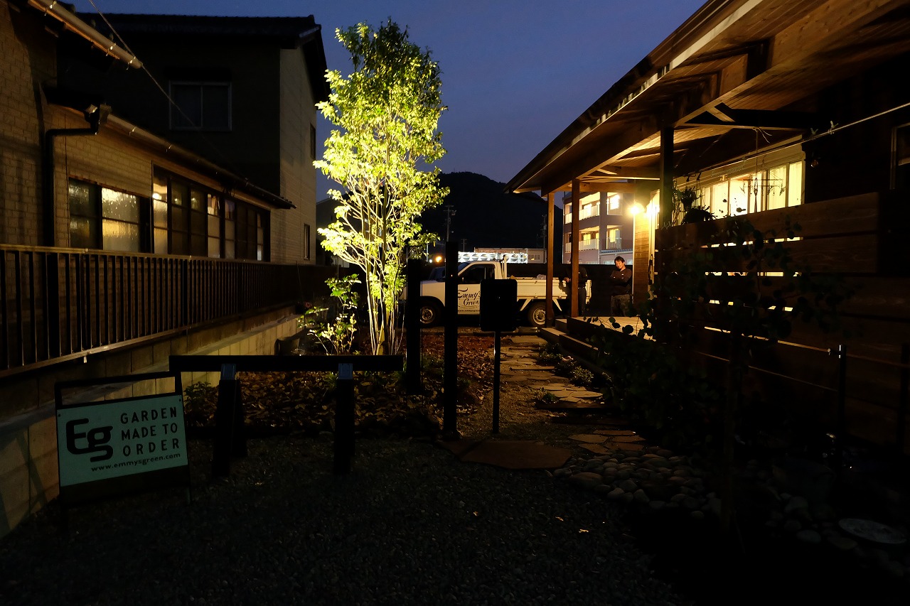 雑木の庭/鉄平石アプローチ/ウリンフェンス/緑化ブロック/門廻り ‘森の中を抜けて家路へ’ そんなイメージから始まったクライアントとの打ち合わせ。 Emmy'sが得意とする雑木の庭をそのまま形にしたEXTERIOR工事 庭にはあえて、落ち葉を撒きました。 表札はEmmy's特製のorder製作したモノです。 昼の光に当てられて文字に影が映り、浮き上がって見えます。 デッキに吊るしたハンモックから夜はナイトガーデンが楽しめます。