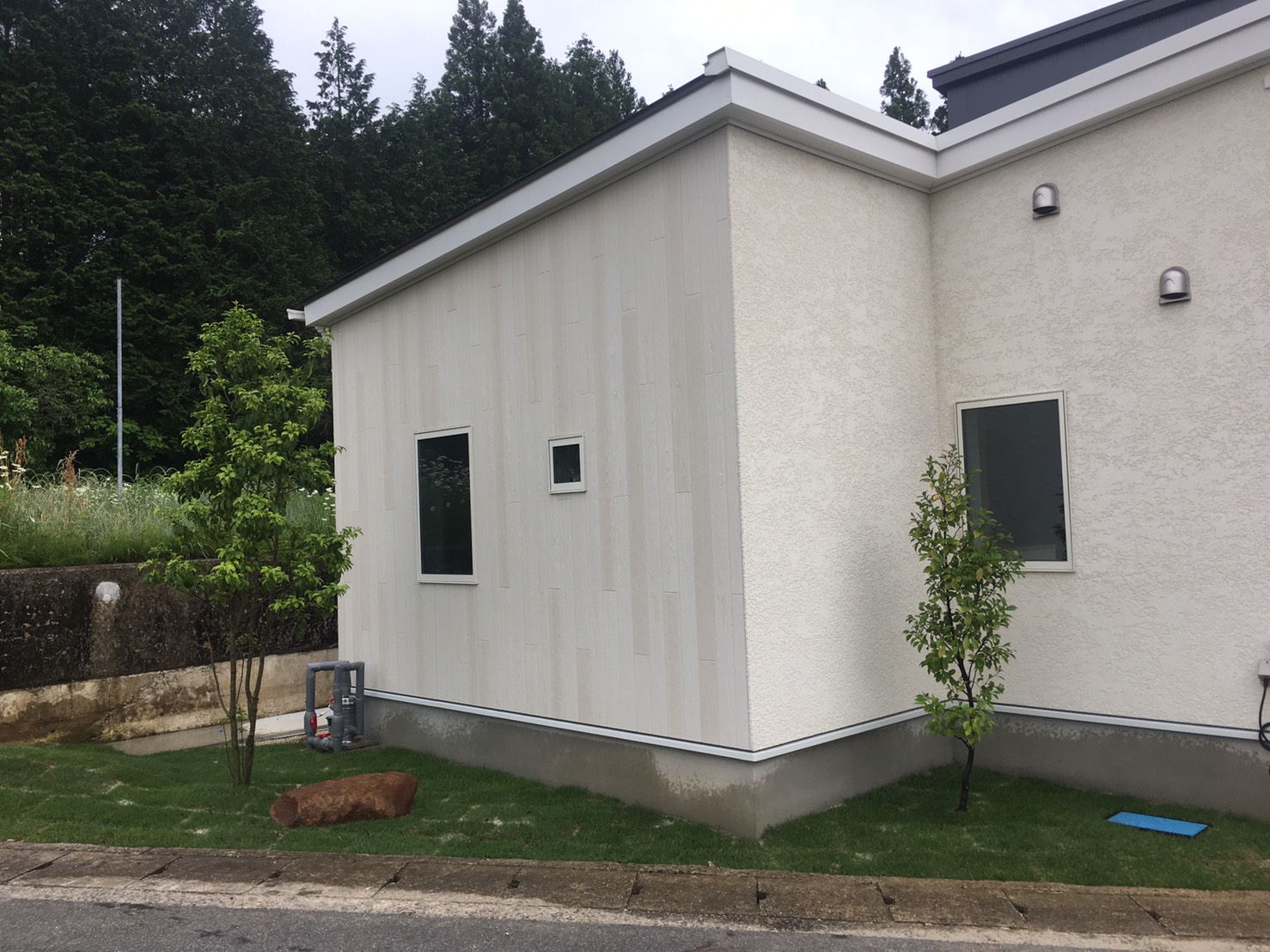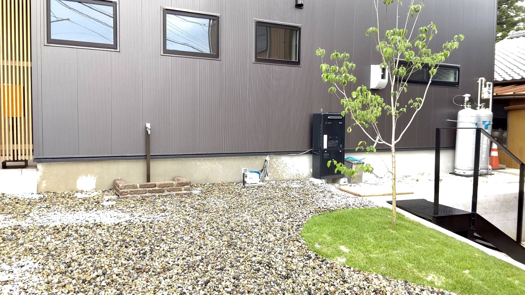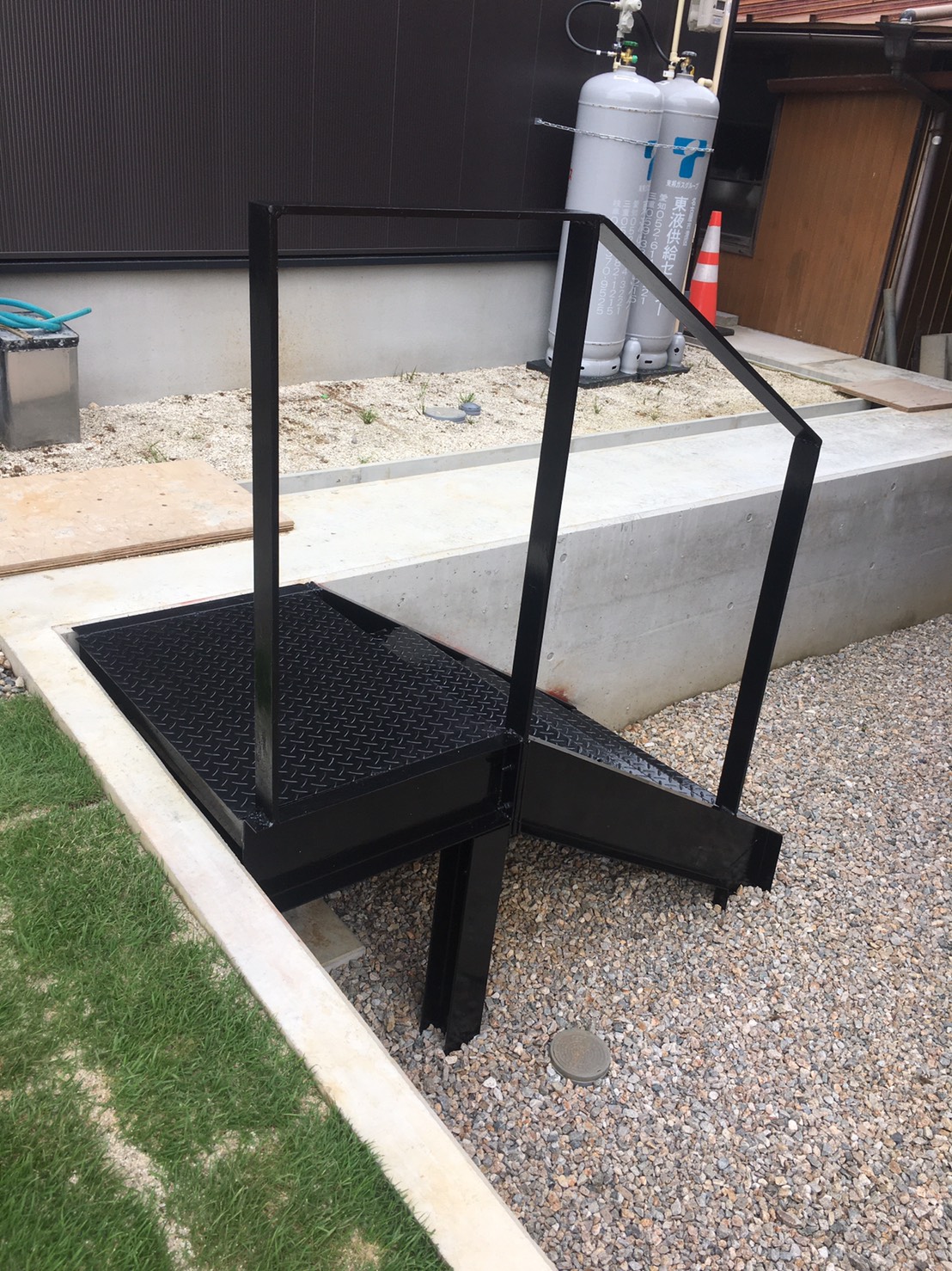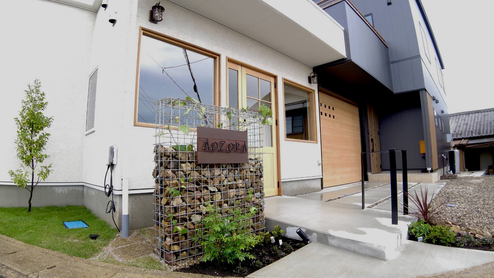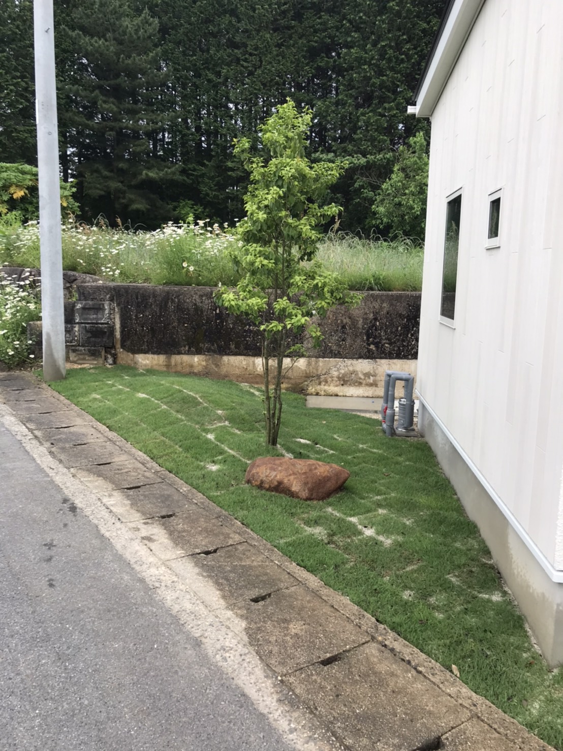 看板/アイアン手すり/アプローチ/鉄板階段/樹木寄せ植え 美容室のGarden&Exterior工事になります。 看板はガビオンという鉄の格子状になったフレームに 植物と石を入れ込んでいます。 全体的にシャープなデザインですが植物をたくさん植え込んで 自然豊かな立地に建物が溶け込むようにしました。