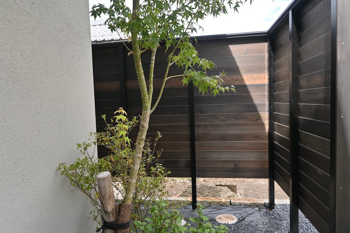 目隠しフェンスは横貼りではなく、縦貼りと鎧貼りという普段はしない工法で