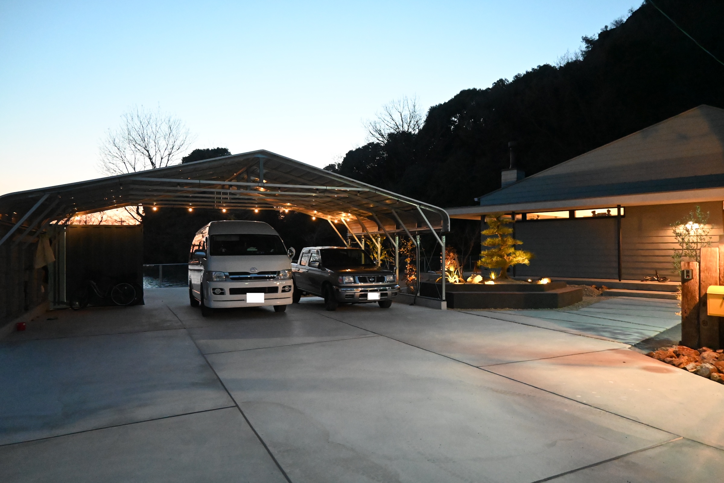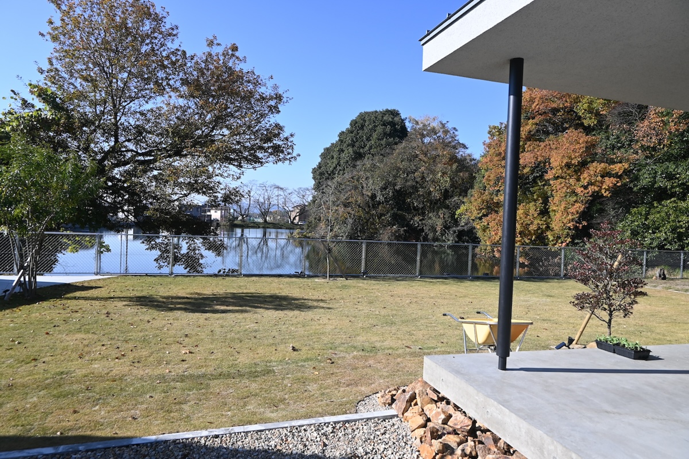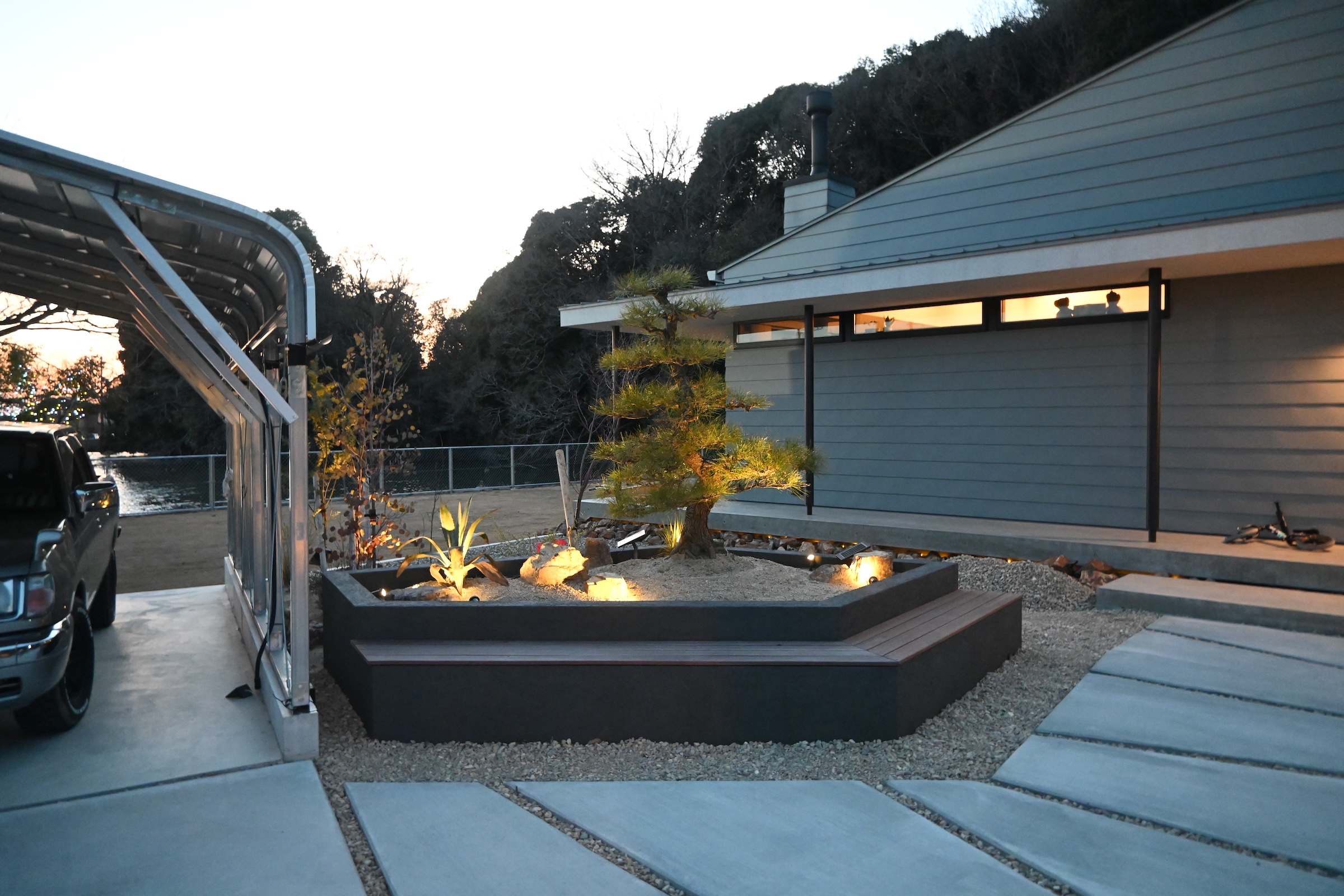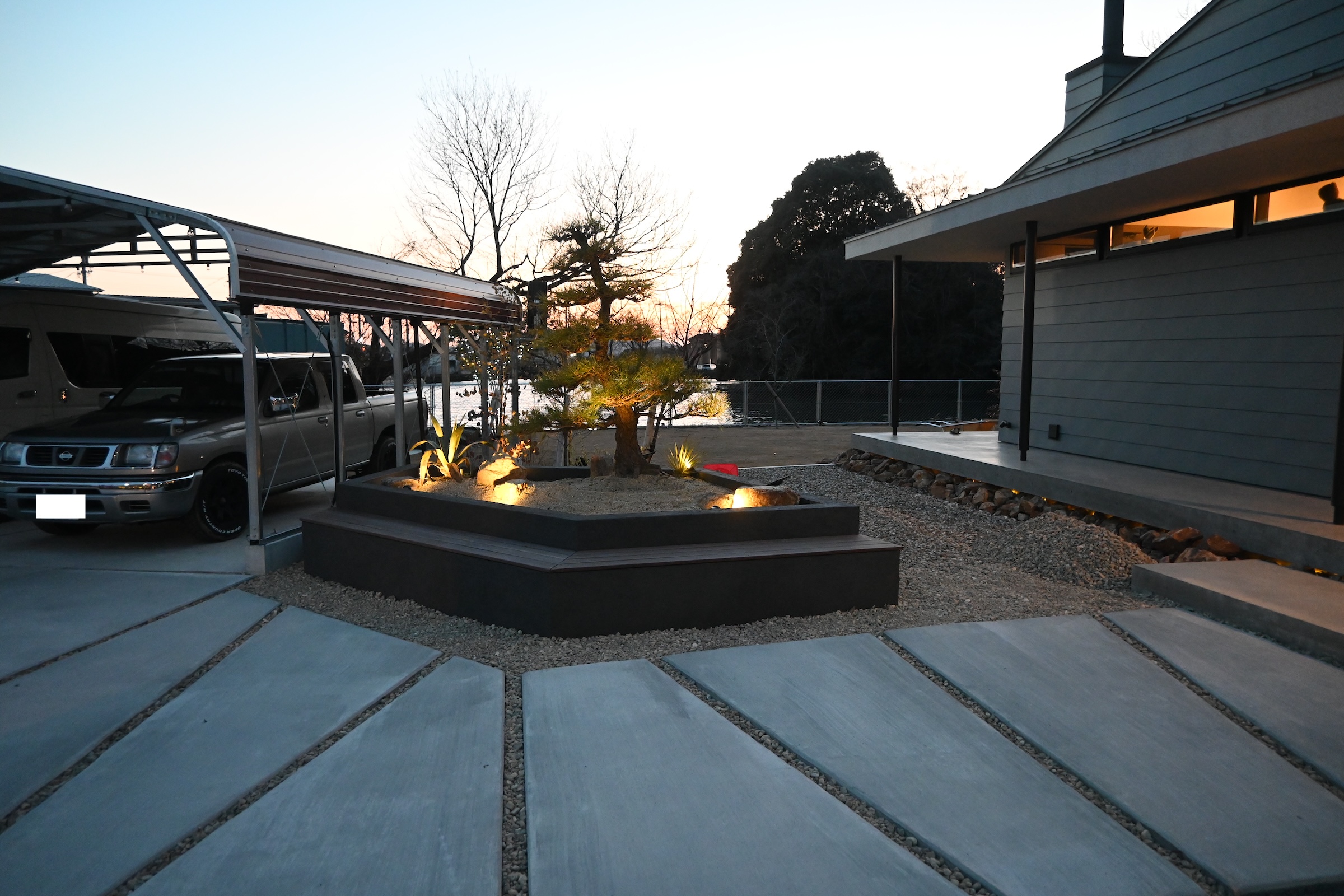 松が植え込んであるので、家のスタイリッシュさがより引き立ちます