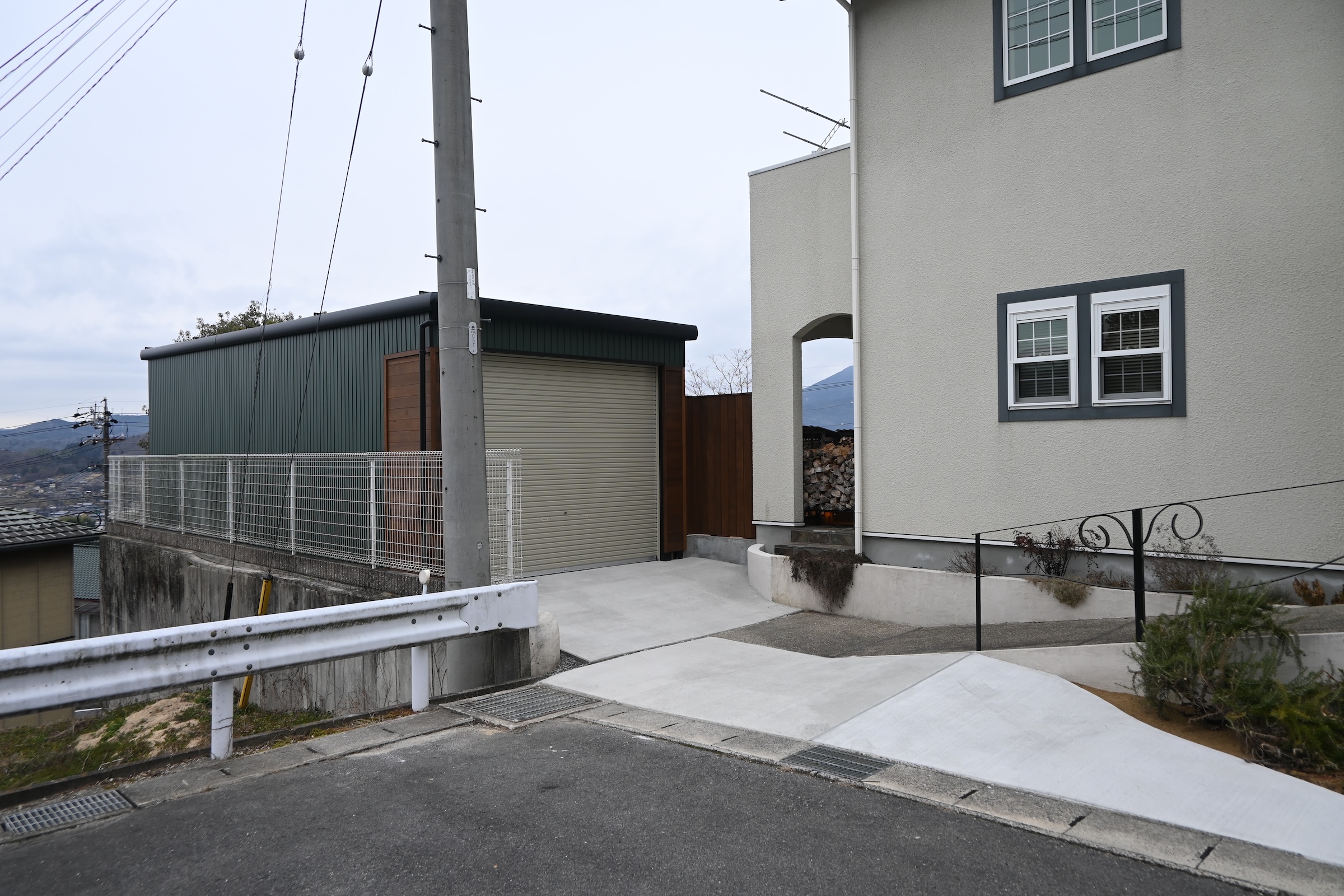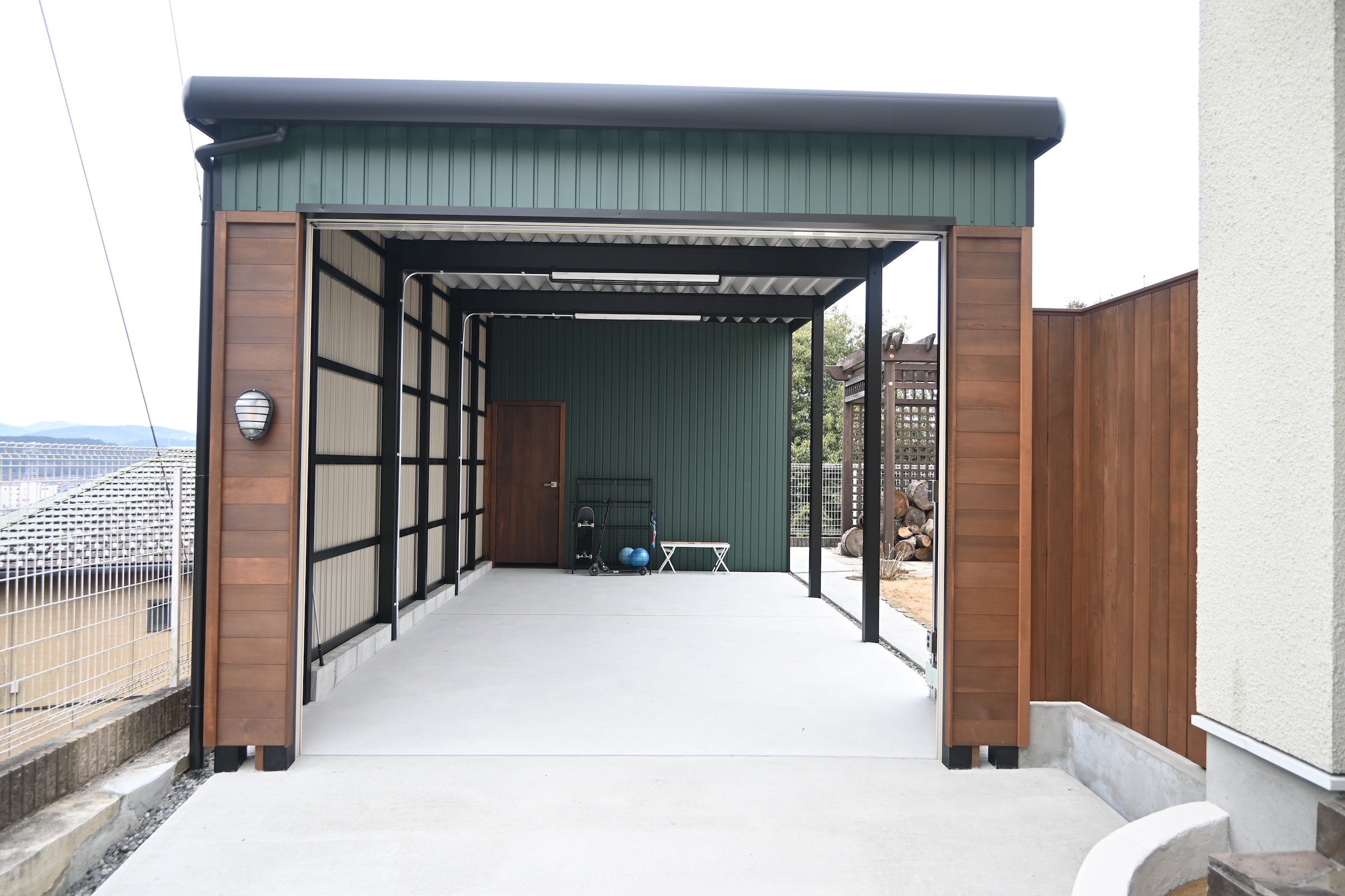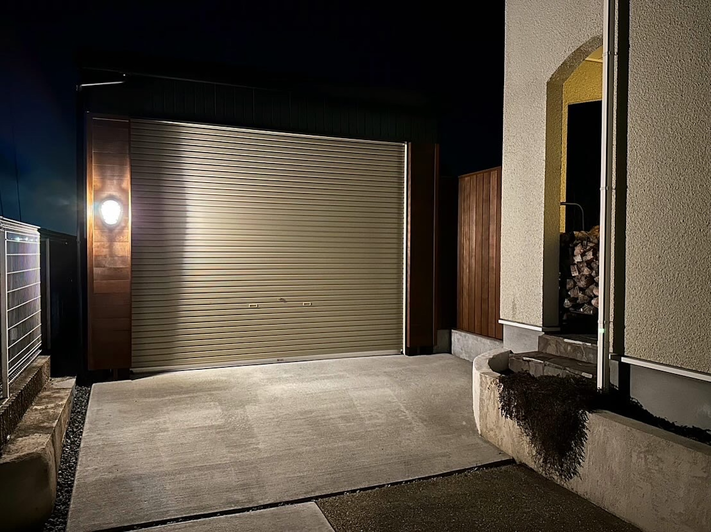 コンクリート/ガレージ/ガルバ壁/天然木板塀/目隠しフェンス