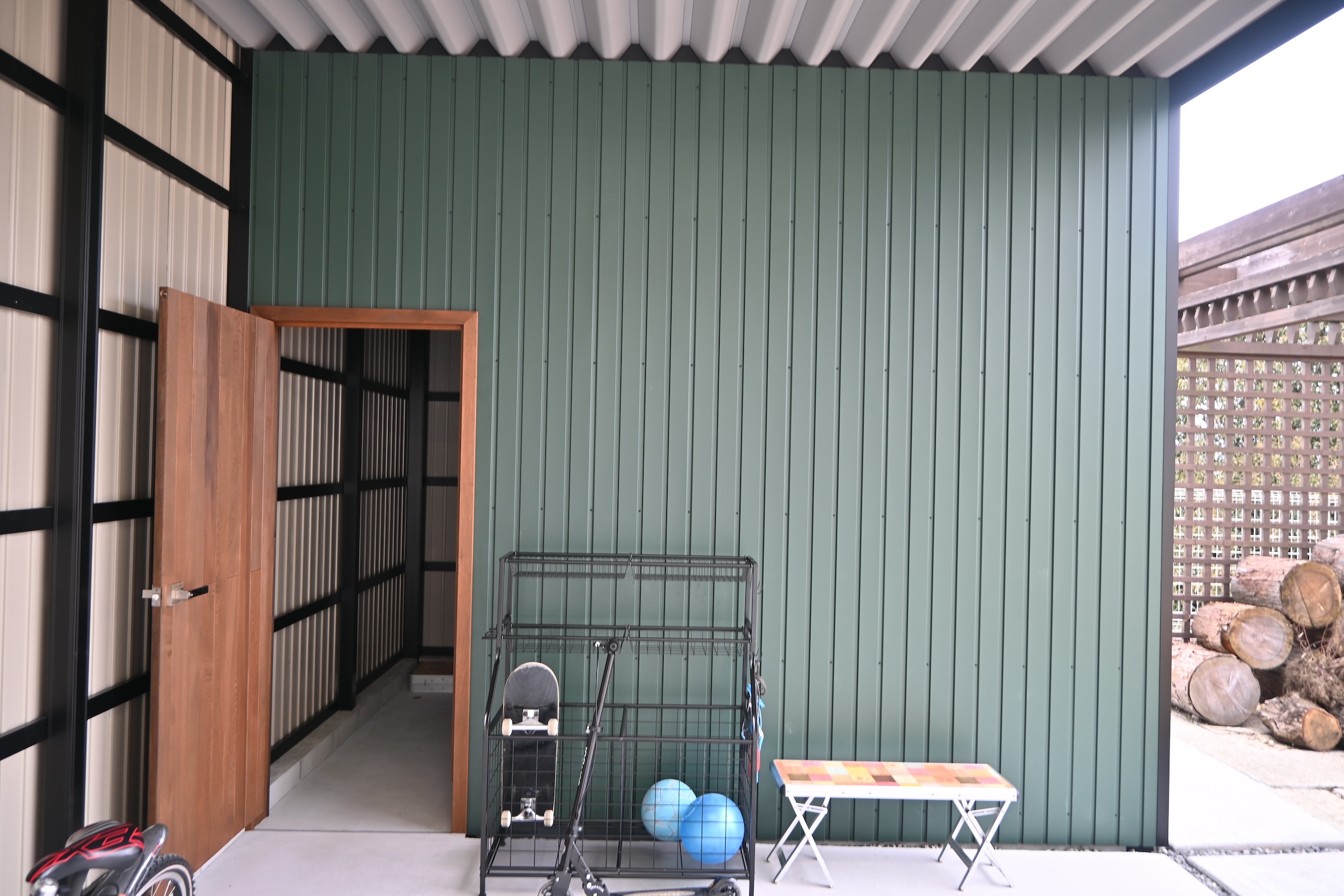 壁はガルバ壁にし、目隠しを兼ねています