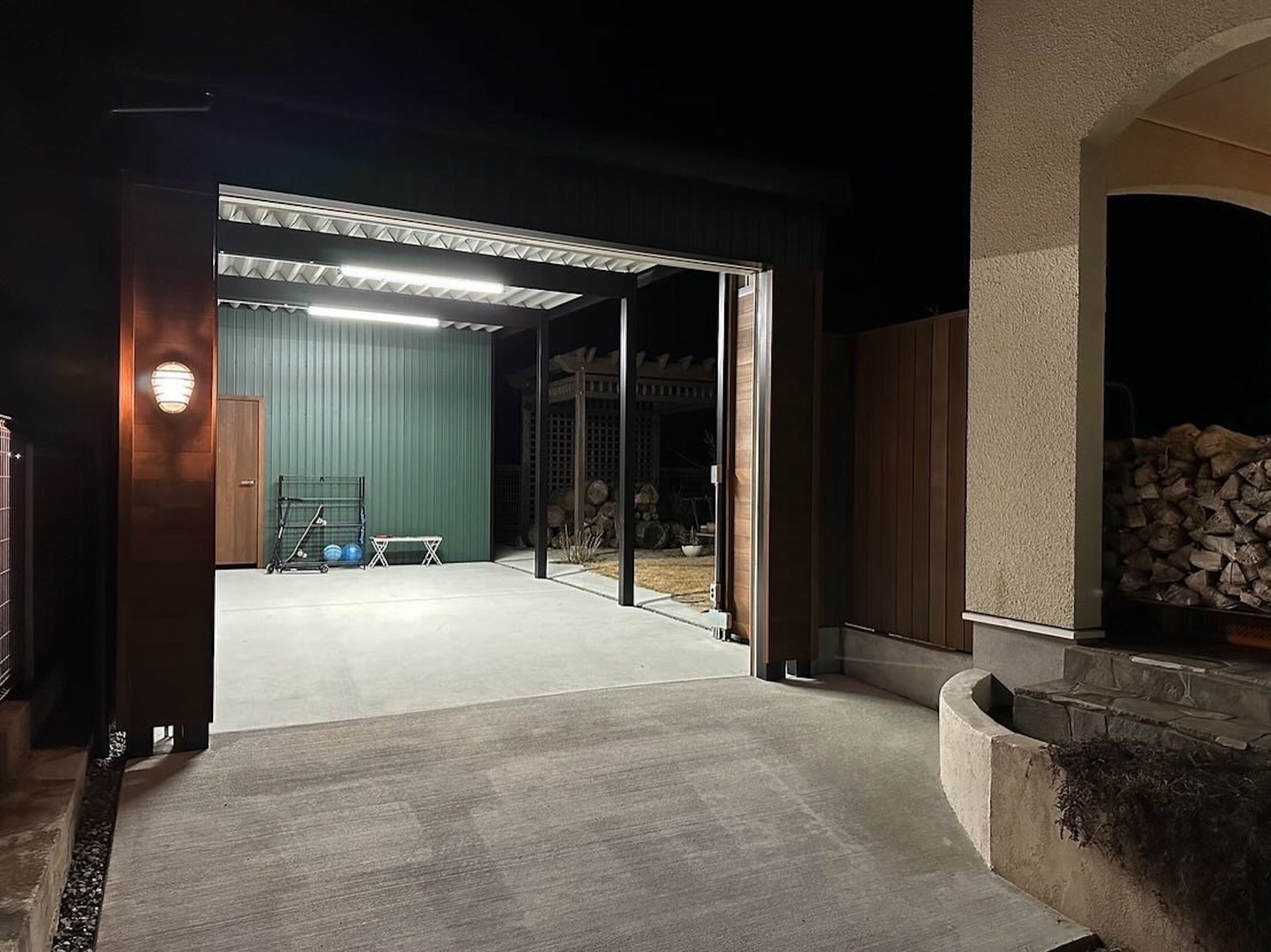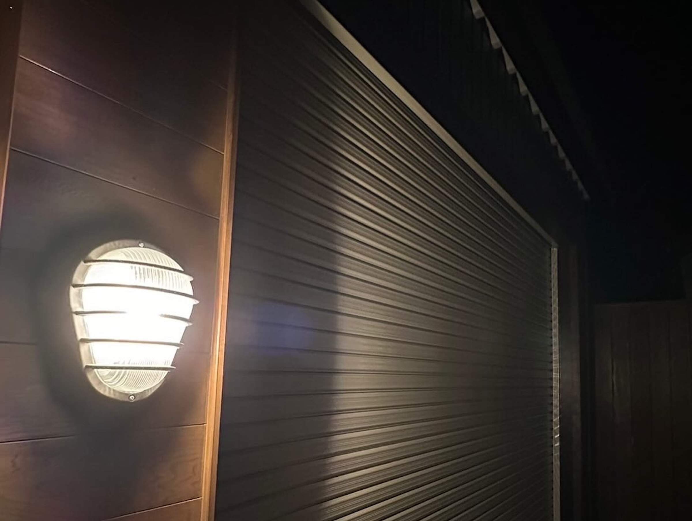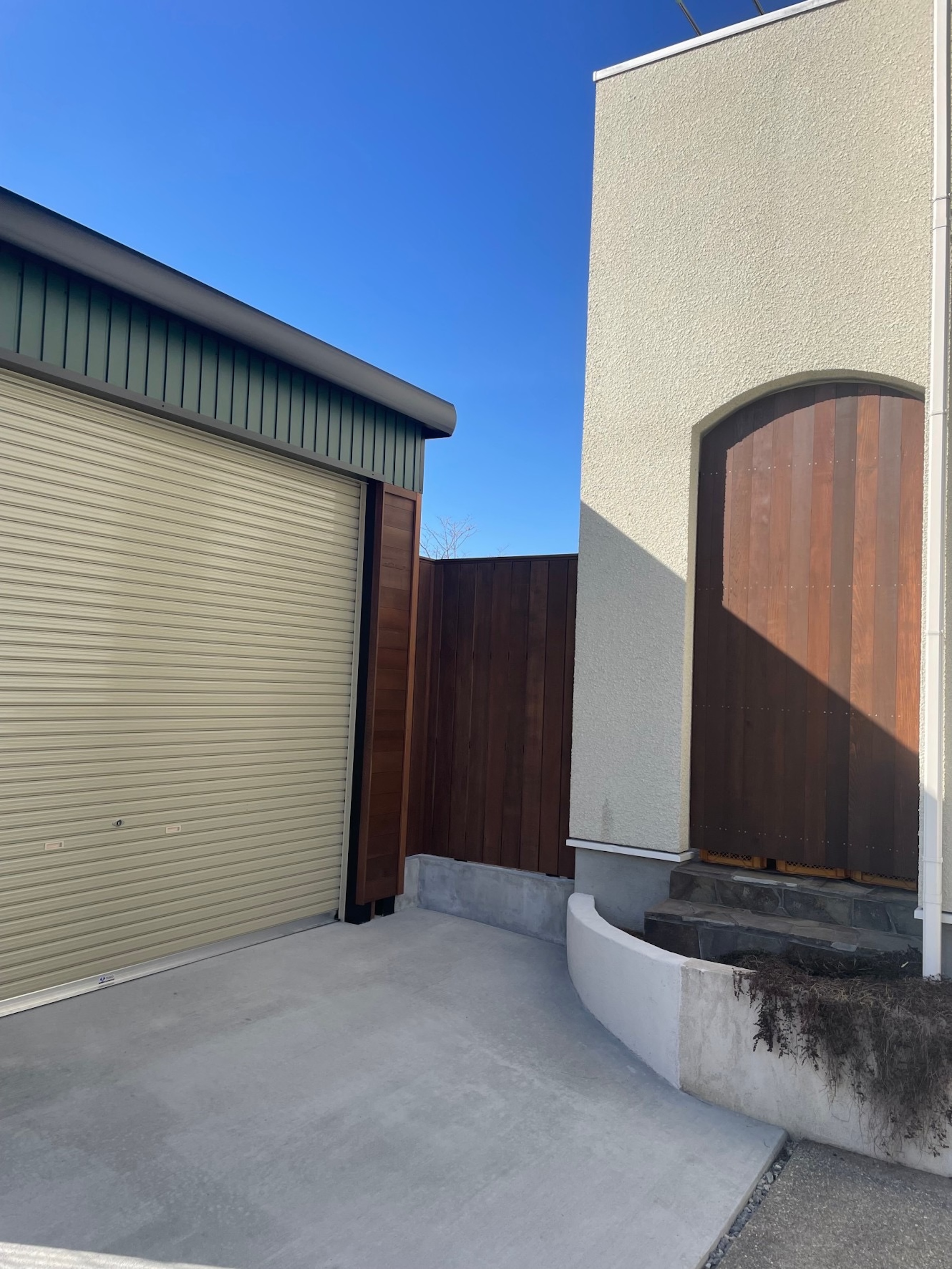 また、ガレージ入口はレッドシダーの板を貼りました