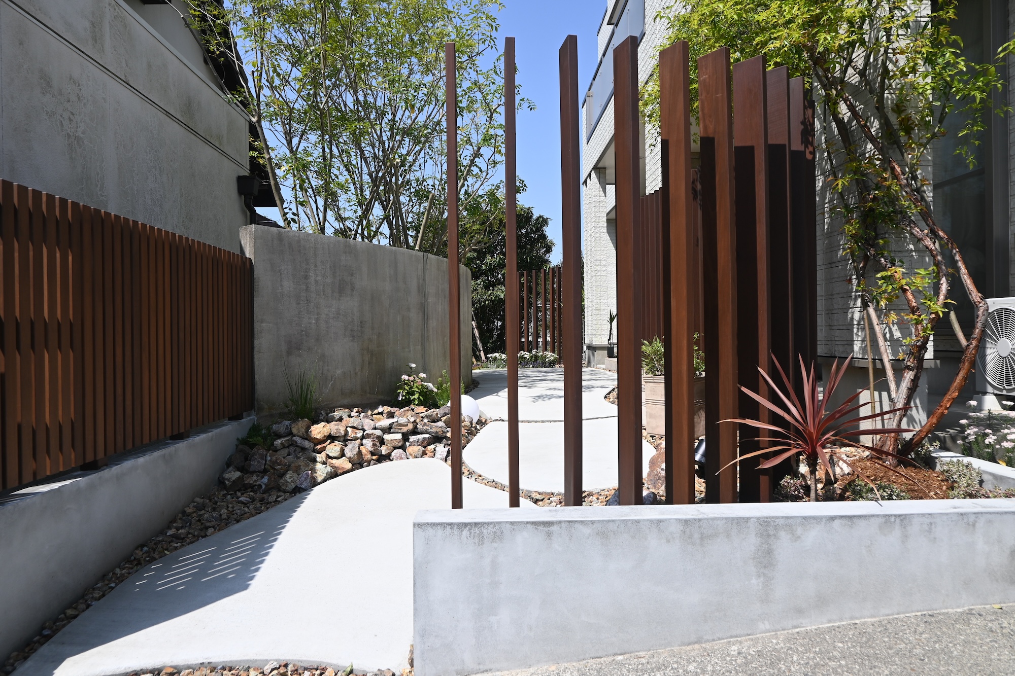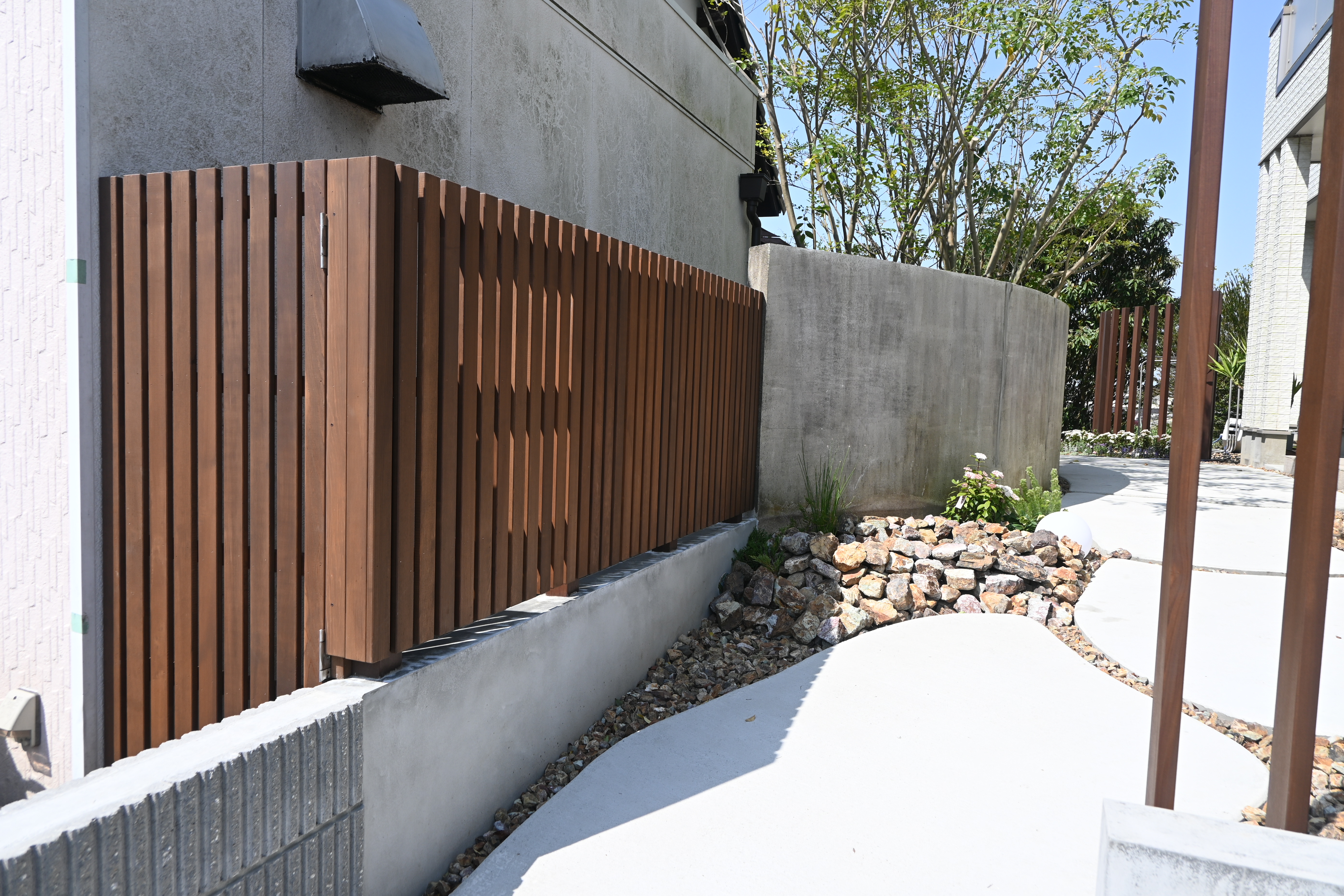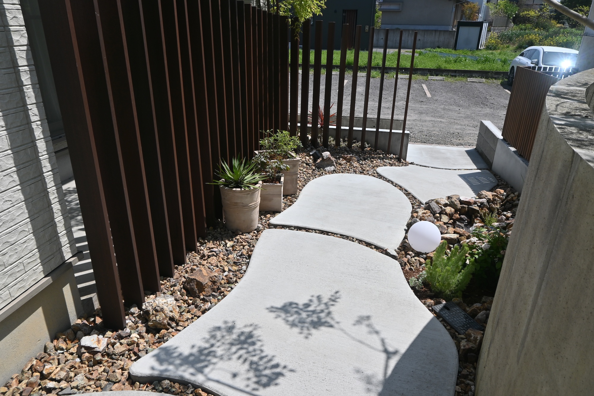 噴水/目隠しフェンス/ハードウッド/アプローチ/植栽工事 犬山市にあるcafe アランチャ様のガーデンリフォームをさあせていただきました 玄関までの動線に噴水を設置しました アプローチから玄関までの帰路は植物や水の音色を聞きながら ゆったりとした気持ちでお家が迎えてくれます 視覚や聴覚で楽しむお庭は、とても心地の良い空間を演出できます