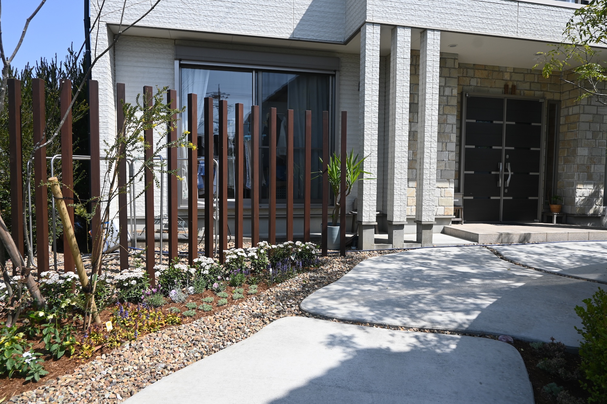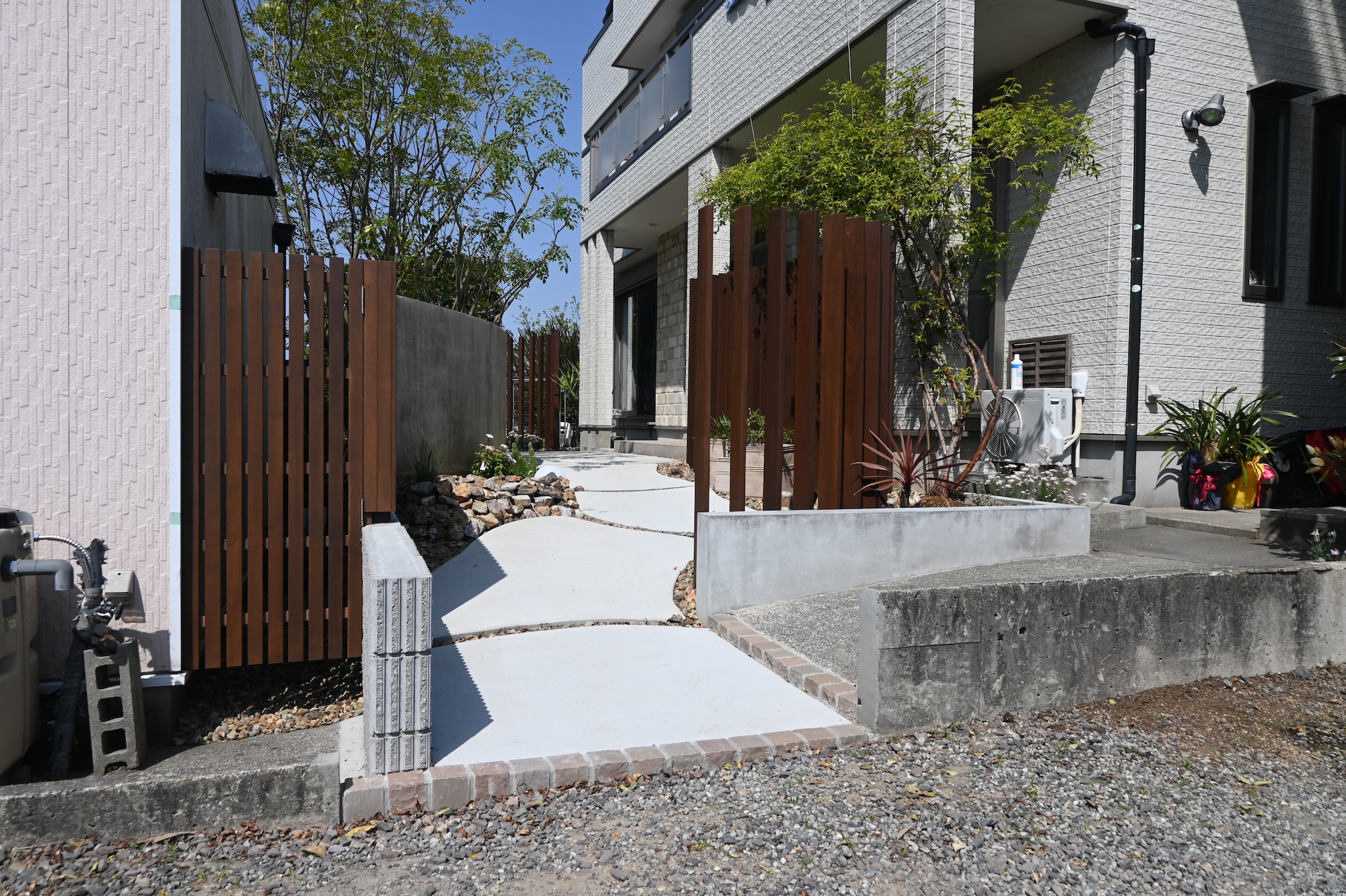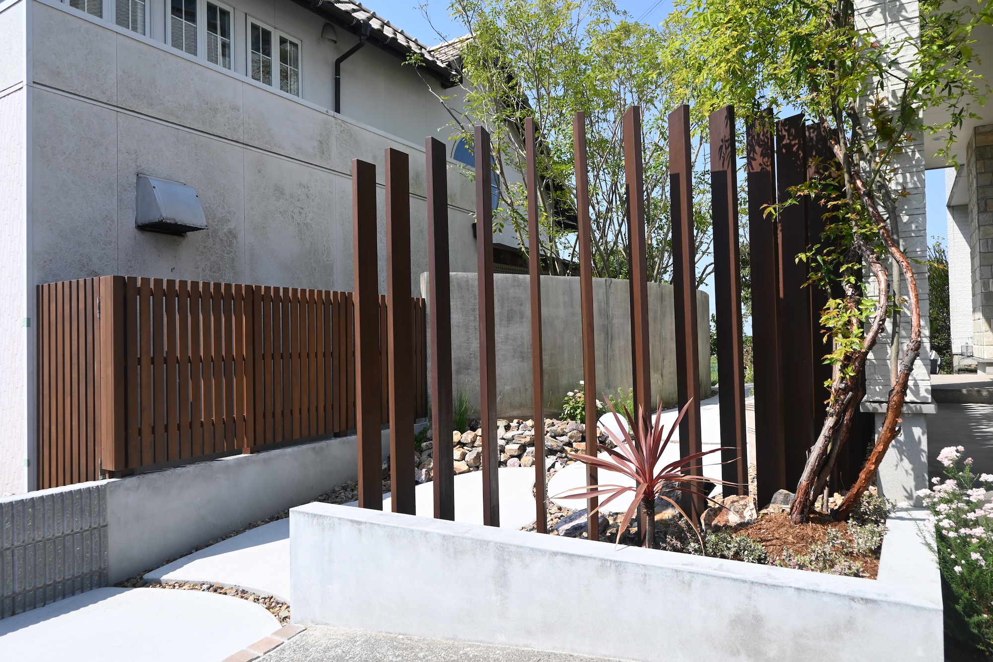 噴水/目隠しフェンス/ハードウッド/アプローチ/植栽工事 犬山市にあるcafe アランチャ様のガーデンリフォームをさあせていただきました 玄関までの動線に噴水を設置しました アプローチから玄関までの帰路は植物や水の音色を聞きながら ゆったりとした気持ちでお家が迎えてくれます 視覚や聴覚で楽しむお庭は、とても心地の良い空間を演出できます